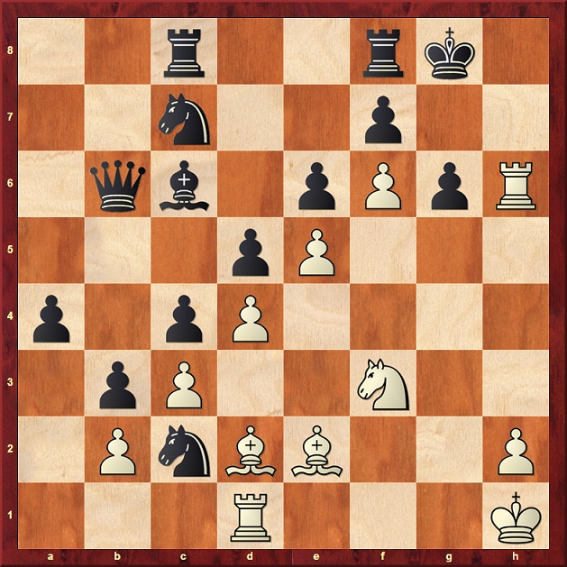 [Event “?”] [Site “?”] [Date “2018.??.??”] [Round “?”] [White “?”] [Black “?”] [Result “1-0”] [SetUp “1”] [FEN “1r3r2/4bpkp/1qb1p1p1/3pP1P1/p1pP1Q2/PpP2N1R/1Pn1B2P/3RB2K w - - 0 22”] [PlyCount “5”] [EventDate “2018.??.??”] [EventType “rapid”] 22. Qf6+ $3 {White wins with this.} Bxf6 23. gxf6+ Kh8 24. Ng5 $1 {And this is 1-0 but there are countless variations with many difficult key moves for white to find.} 1-0